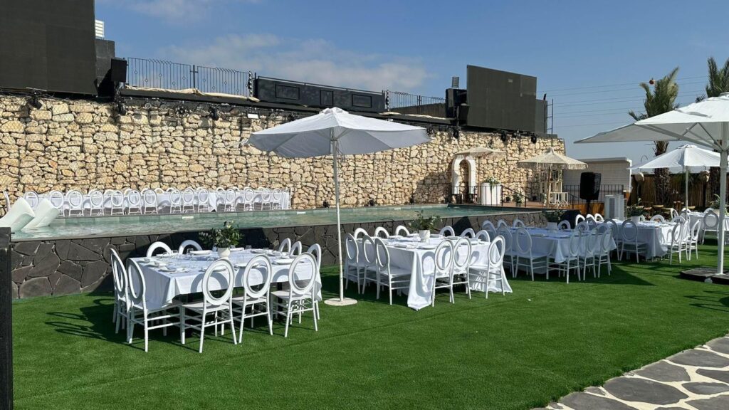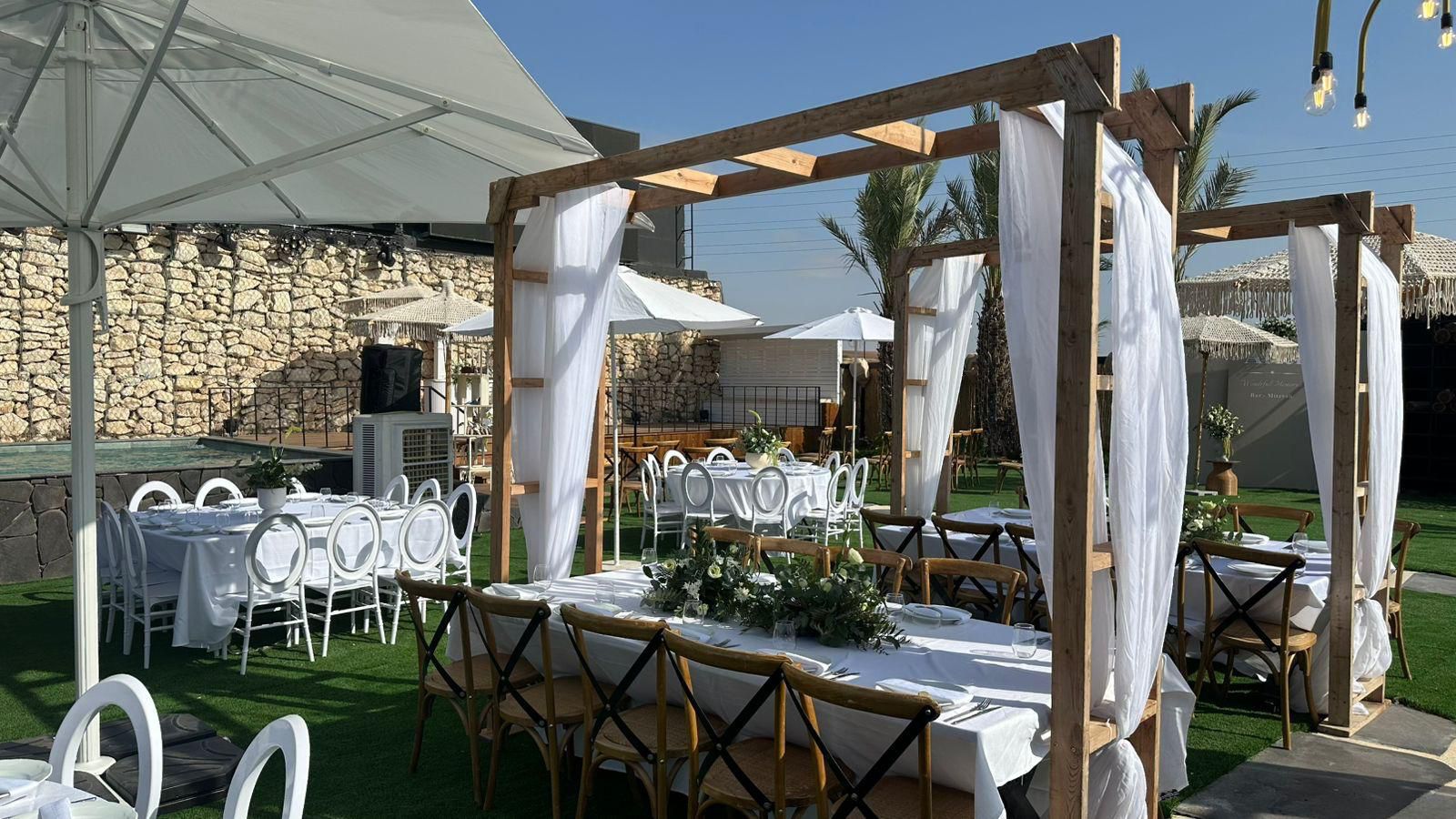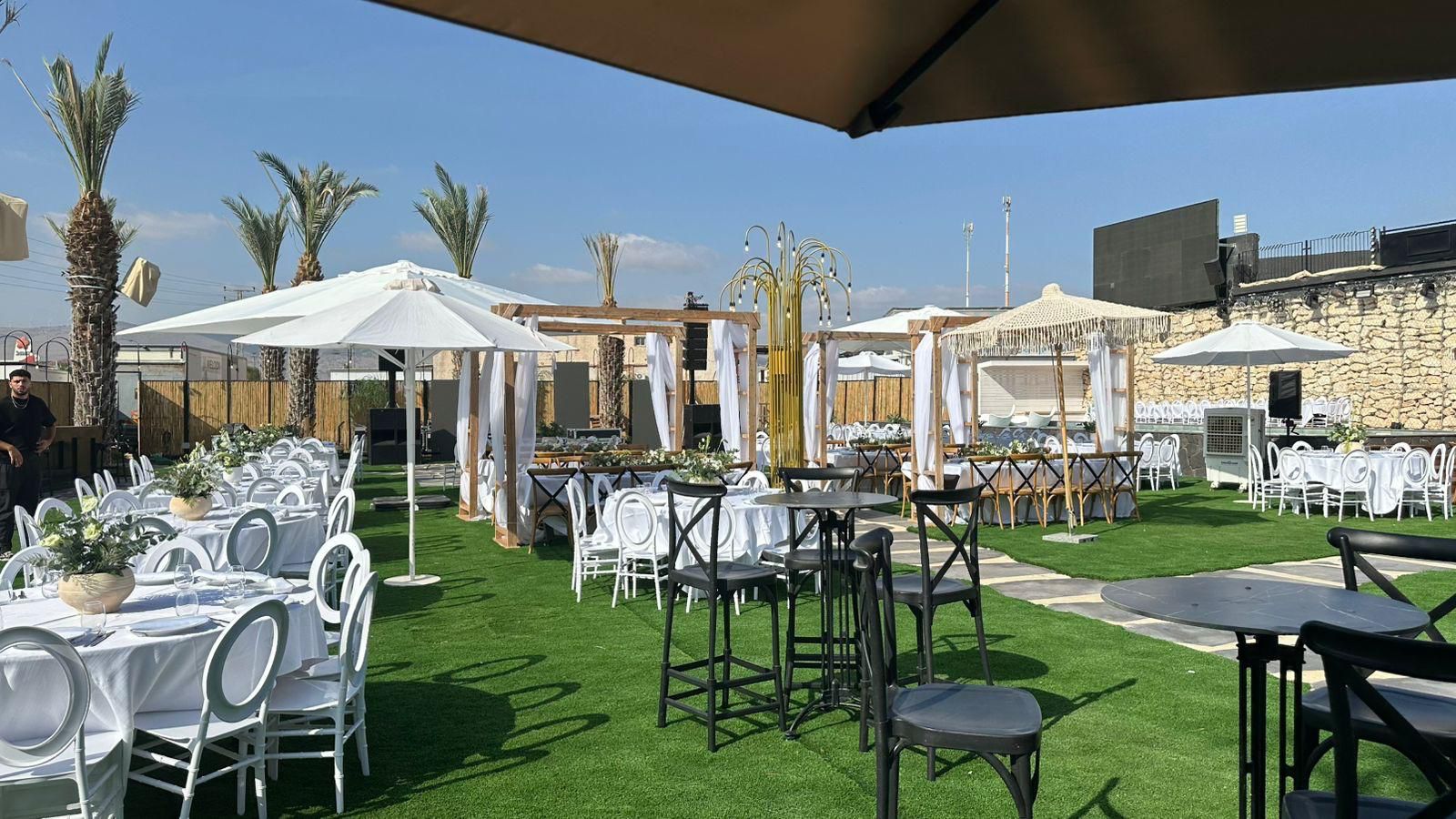 אפשרות להשכרת מתחם בלבד או בחירה בחבילת "הכל כלול" הכוללת אוכל, מלצרים, ציוד, דיג׳יי, צלם, עיצוב ועוד. השירות מאפשר הפקת אירוע מלא במקום פתוח באווירה ייחודית.